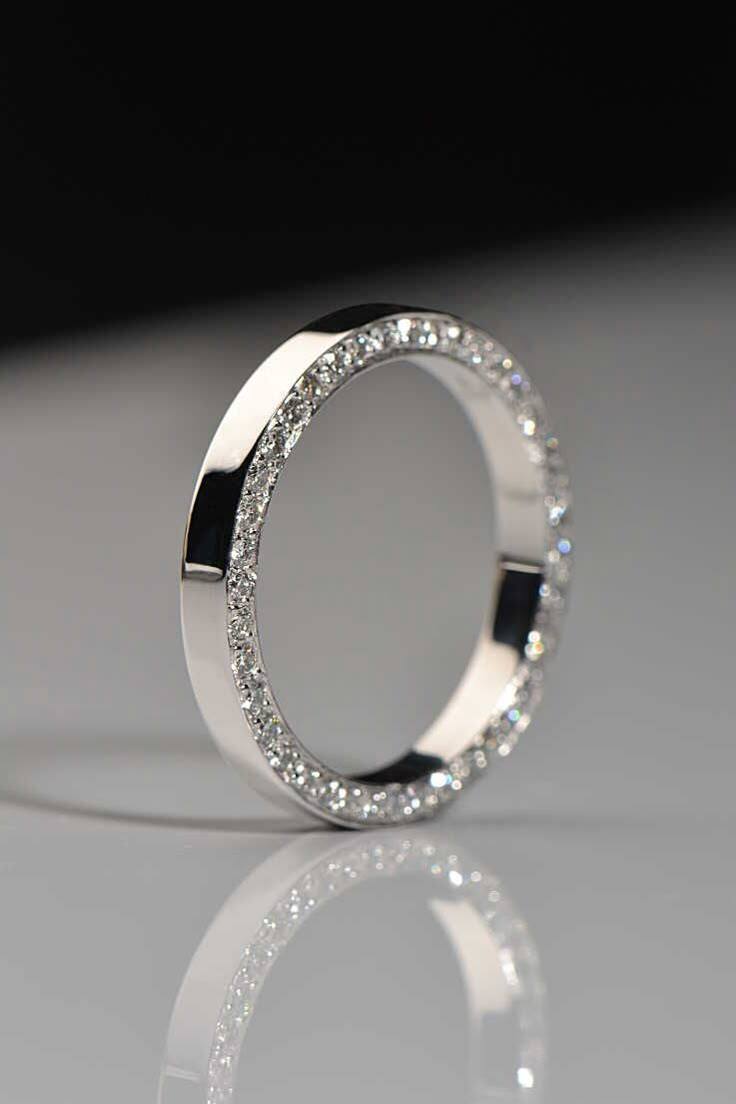 Eternity Band: Diamonds encircle the entire band in a continuous loop, symbolizing eternal love and offering sparkle from every angle.
