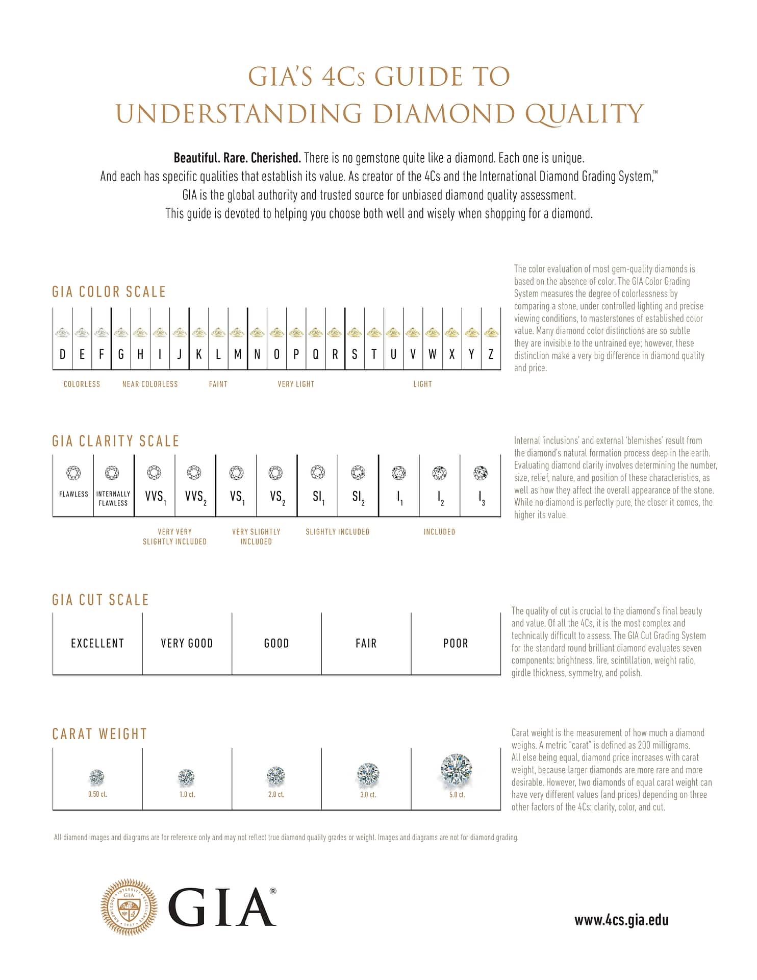 Diamond color grades range from D (colorless) to Z (light yellow or brown).