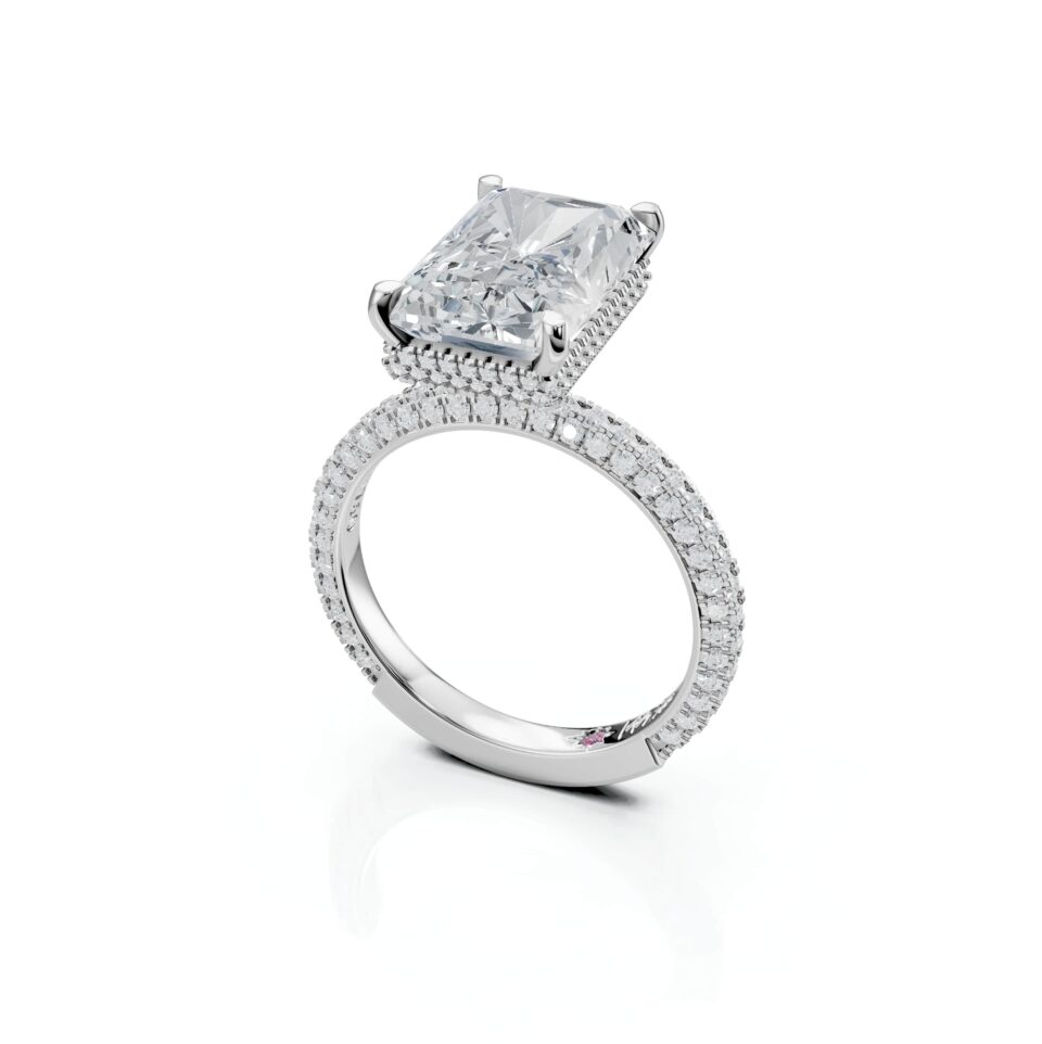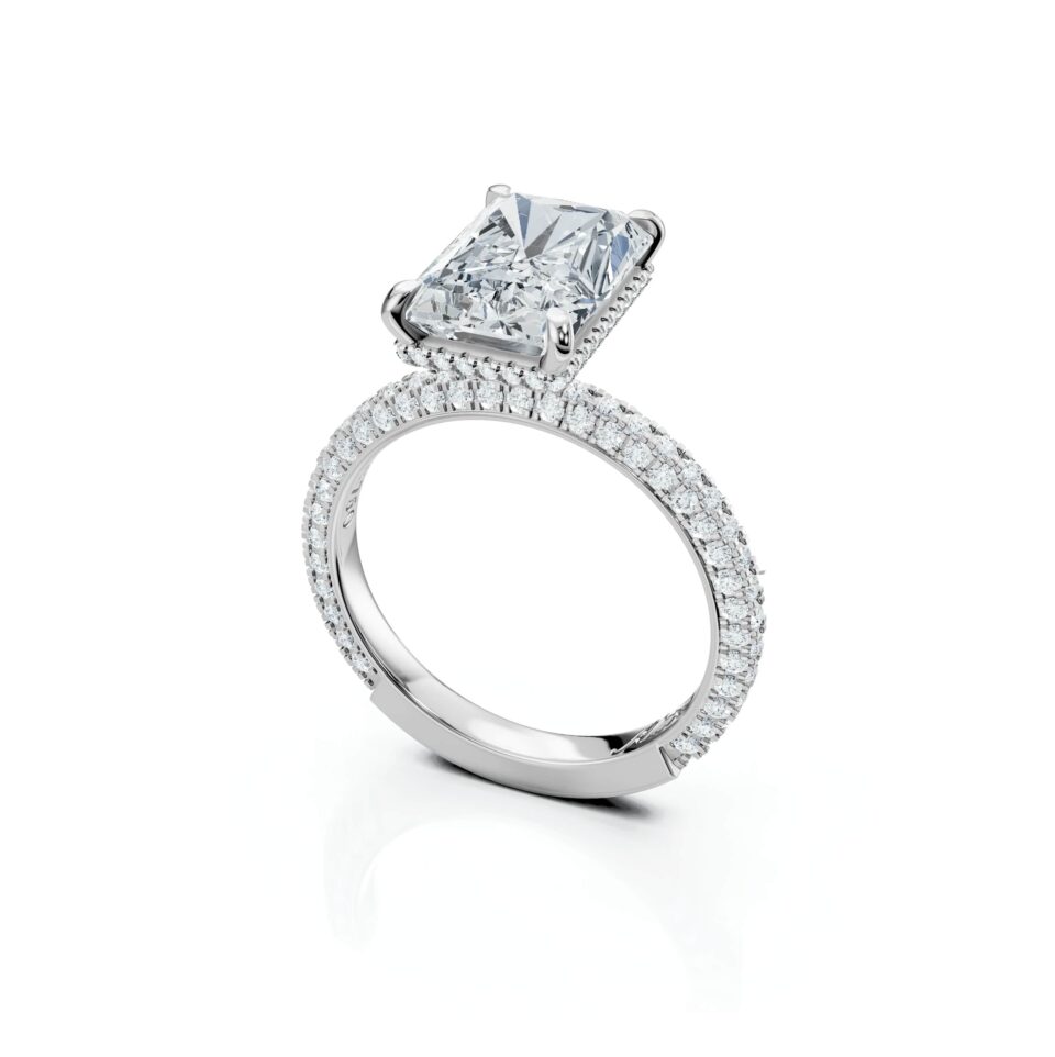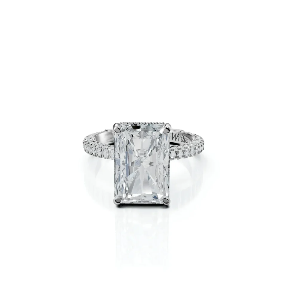 Radiant Diamonds merge the brilliance with a rectangular or square outline, showcasing striking fire and sparkle. Their beveled corners offer exceptional durability and a stylish flair. It is a hybrid shape that combines the faceted style of a round brilliant cut and the step cut of emerald-shaped stones. Typically 70 facets, strategically placed to increase fire and brilliance. Ideal for lively, fashion-forward personalities seeking intense sparkle and brilliance within a versatile shape.
