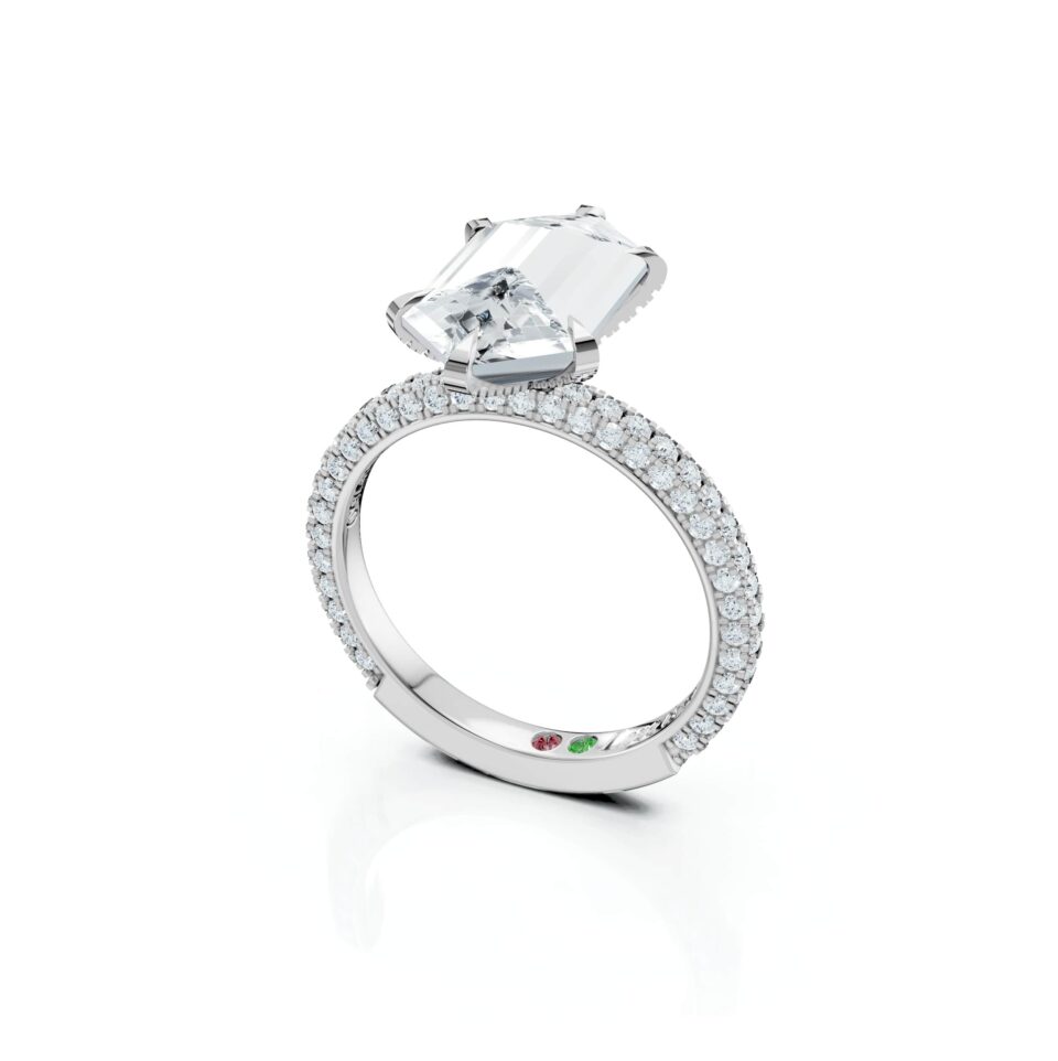 Radiant Diamonds merge the brilliance with a rectangular or square outline, showcasing striking fire and sparkle. Their beveled corners offer exceptional durability and a stylish flair. It is a hybrid shape that combines the faceted style of a round brilliant cut and the step cut of emerald-shaped stones. Typically 70 facets, strategically placed to increase fire and brilliance. Ideal for lively, fashion-forward personalities seeking intense sparkle and brilliance within a versatile shape.
