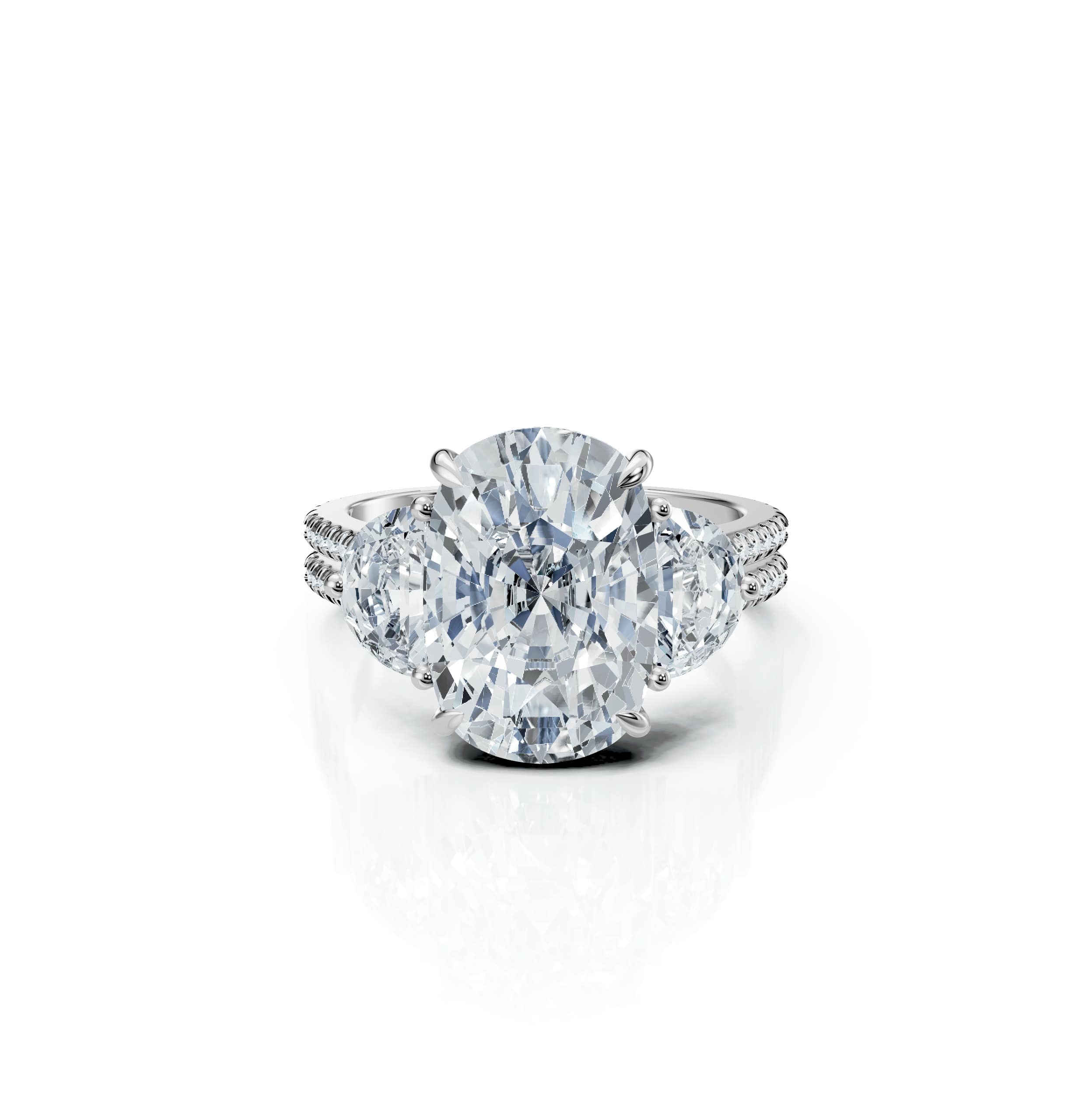 5.36 ct Elongated Cushion-cut centre stone with Half Moon diamond accents (as shown)