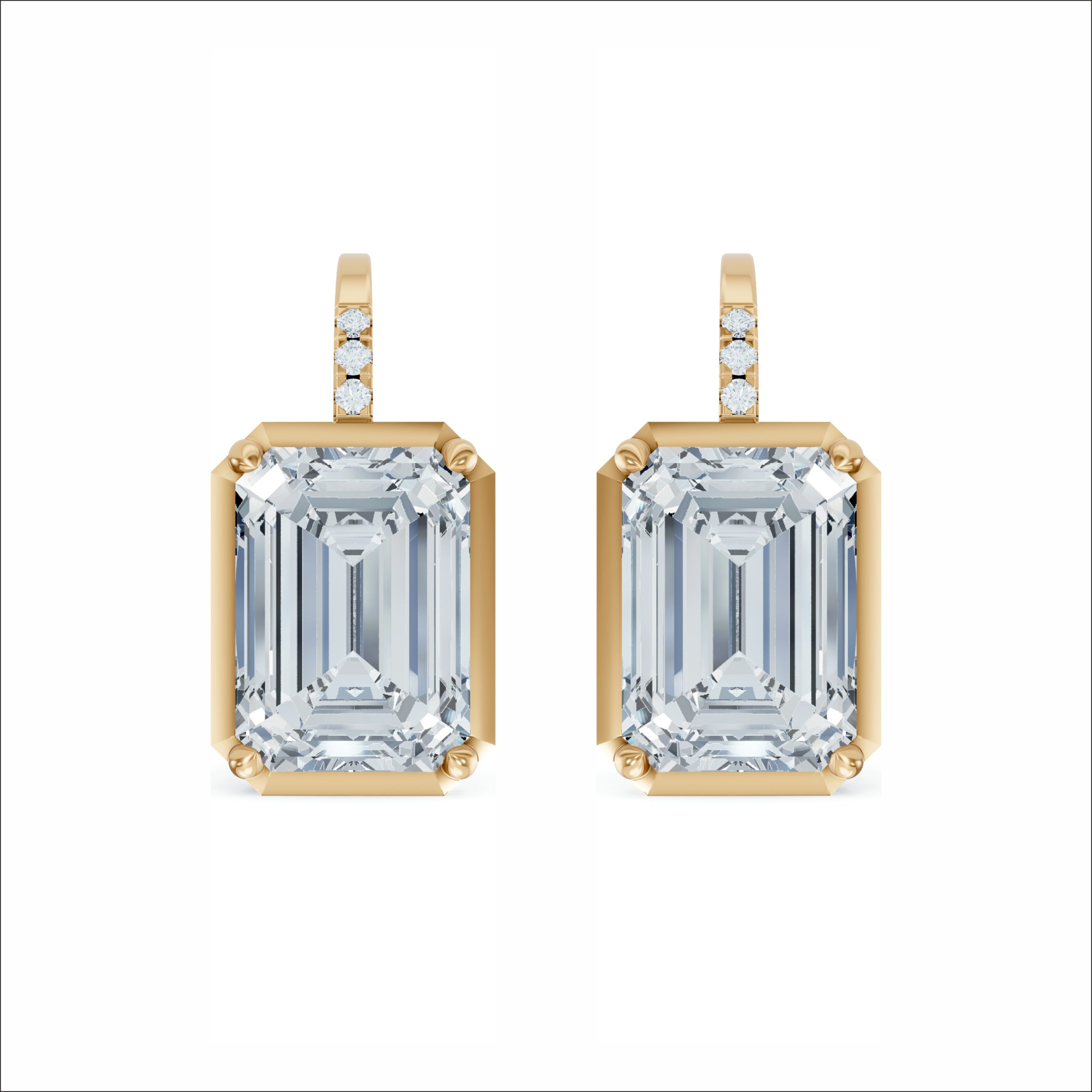 Emerald Bezel Frame Drop Earrings