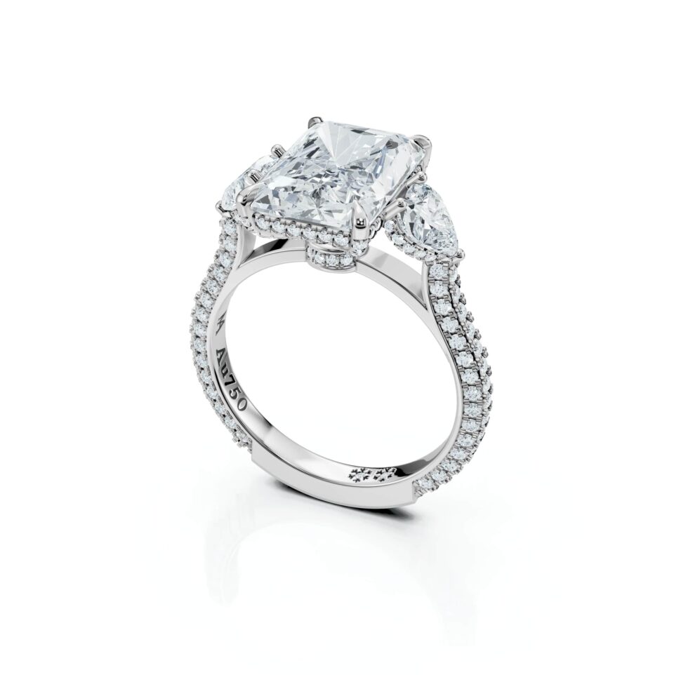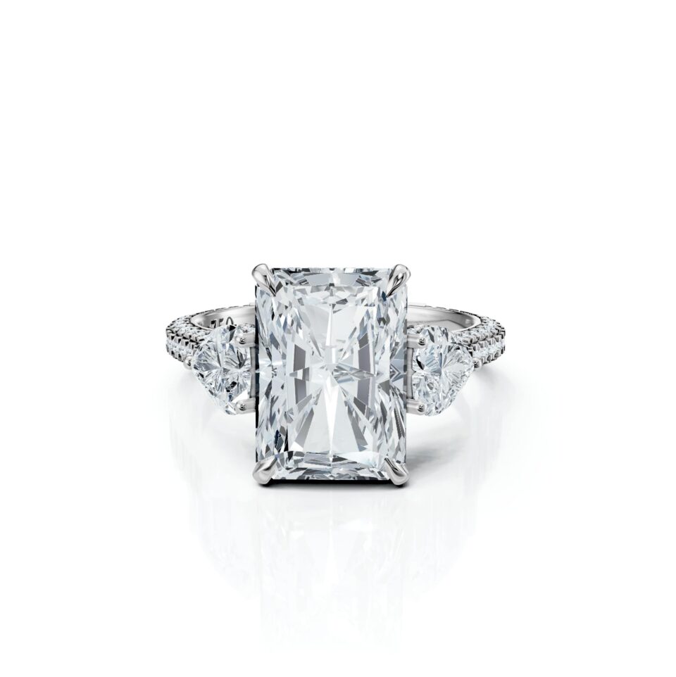 Radiant Diamonds merge the brilliance with a rectangular or square outline, showcasing striking fire and sparkle. Their beveled corners offer exceptional durability and a stylish flair. It is a hybrid shape that combines the faceted style of a round brilliant cut and the step cut of emerald-shaped stones. Typically 70 facets, strategically placed to increase fire and brilliance. Ideal for lively, fashion-forward personalities seeking intense sparkle and brilliance within a versatile shape.