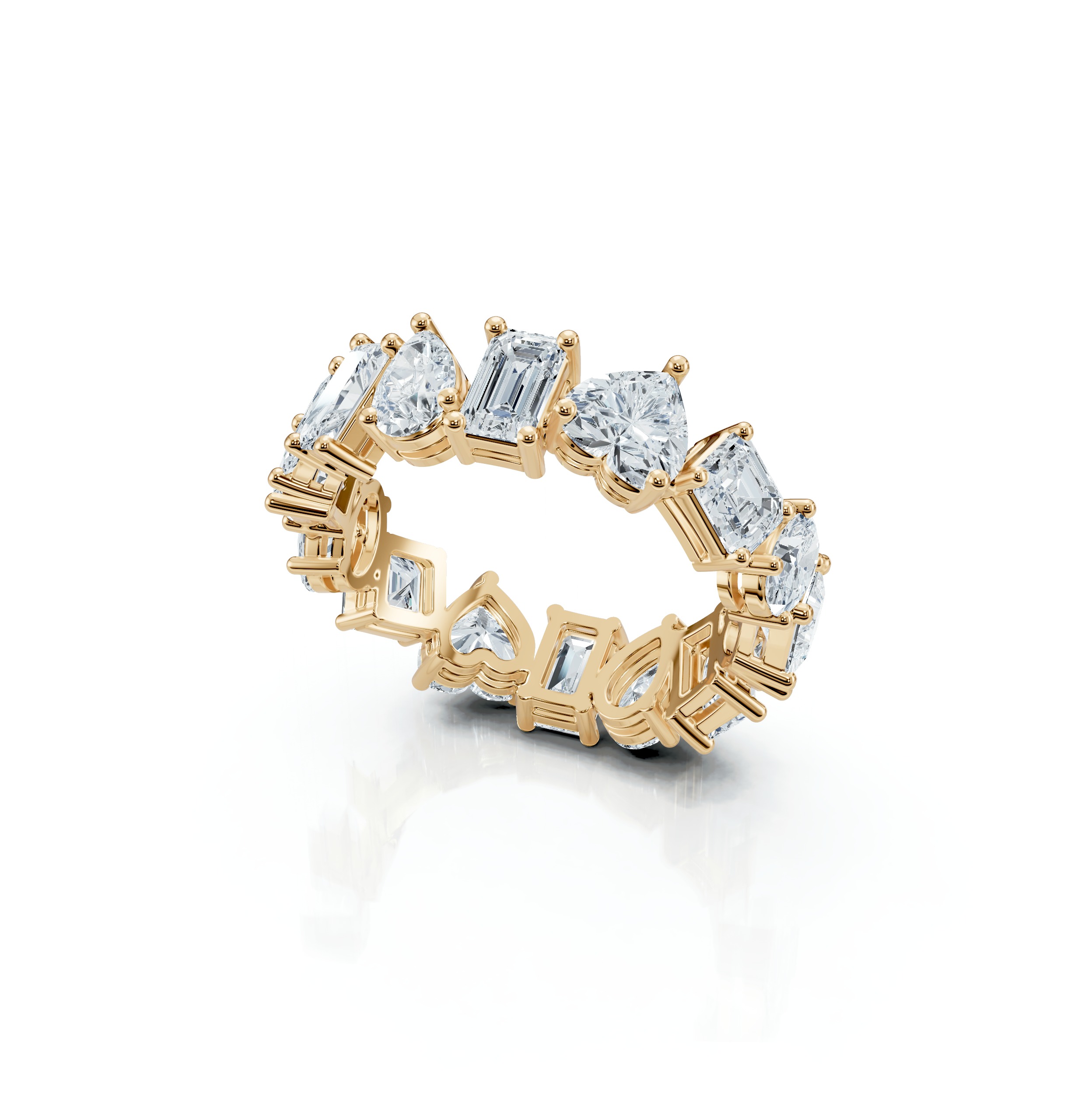 Radiant Diamonds merge the brilliance with a rectangular or square outline, showcasing striking fire and sparkle. Their beveled corners offer exceptional durability and a stylish flair. It is a hybrid shape that combines the faceted style of a round brilliant cut and the step cut of emerald-shaped stones. Typically 70 facets, strategically placed to increase fire and brilliance. Ideal for lively, fashion-forward personalities seeking intense sparkle and brilliance within a versatile shape.