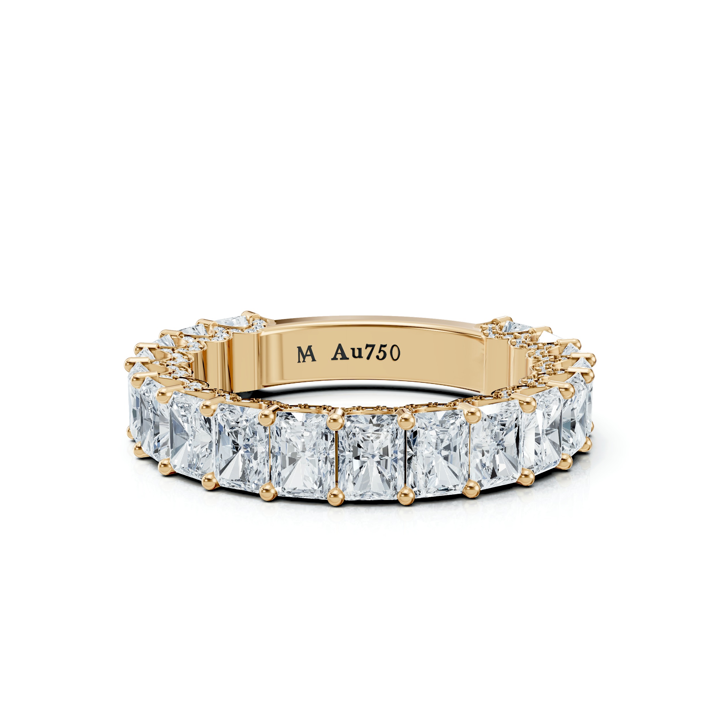 Half eternity: Diamonds are set only across the top half of the ring’s band.