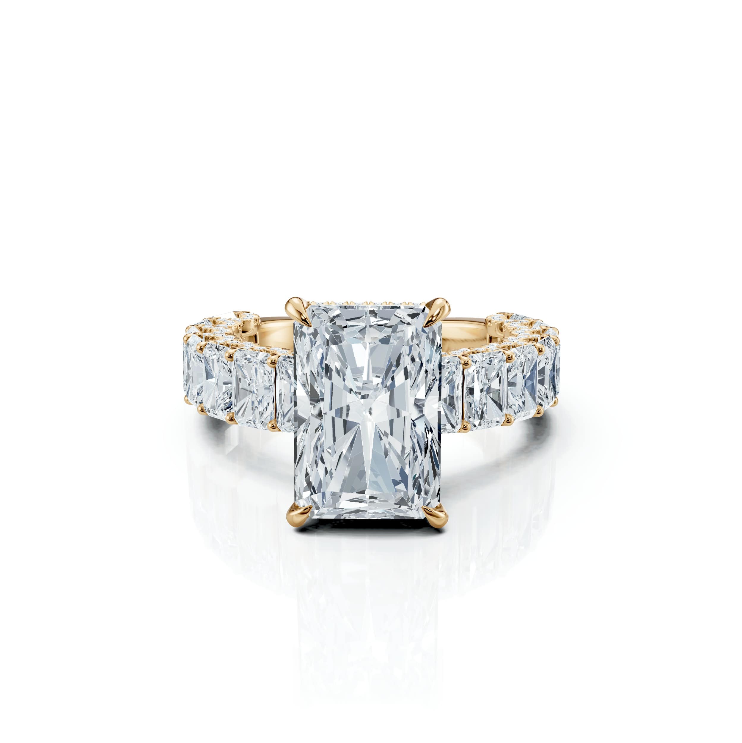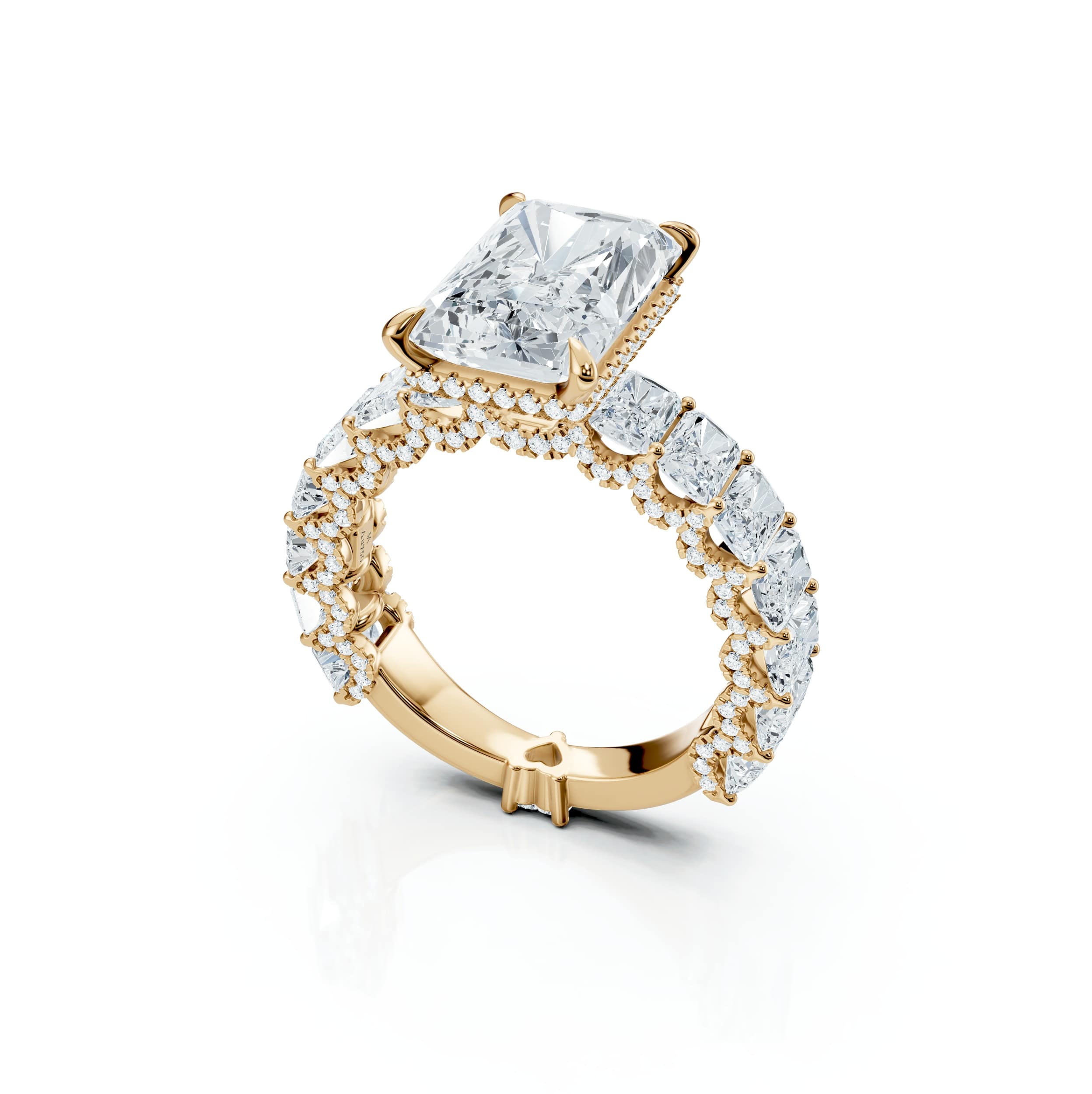 Radiant Diamonds merge the brilliance with a rectangular or square outline, showcasing striking fire and sparkle. Their beveled corners offer exceptional durability and a stylish flair. It is a hybrid shape that combines the faceted style of a round brilliant cut and the step cut of emerald-shaped stones. Typically 70 facets, strategically placed to increase fire and brilliance. Ideal for lively, fashion-forward personalities seeking intense sparkle and brilliance within a versatile shape.