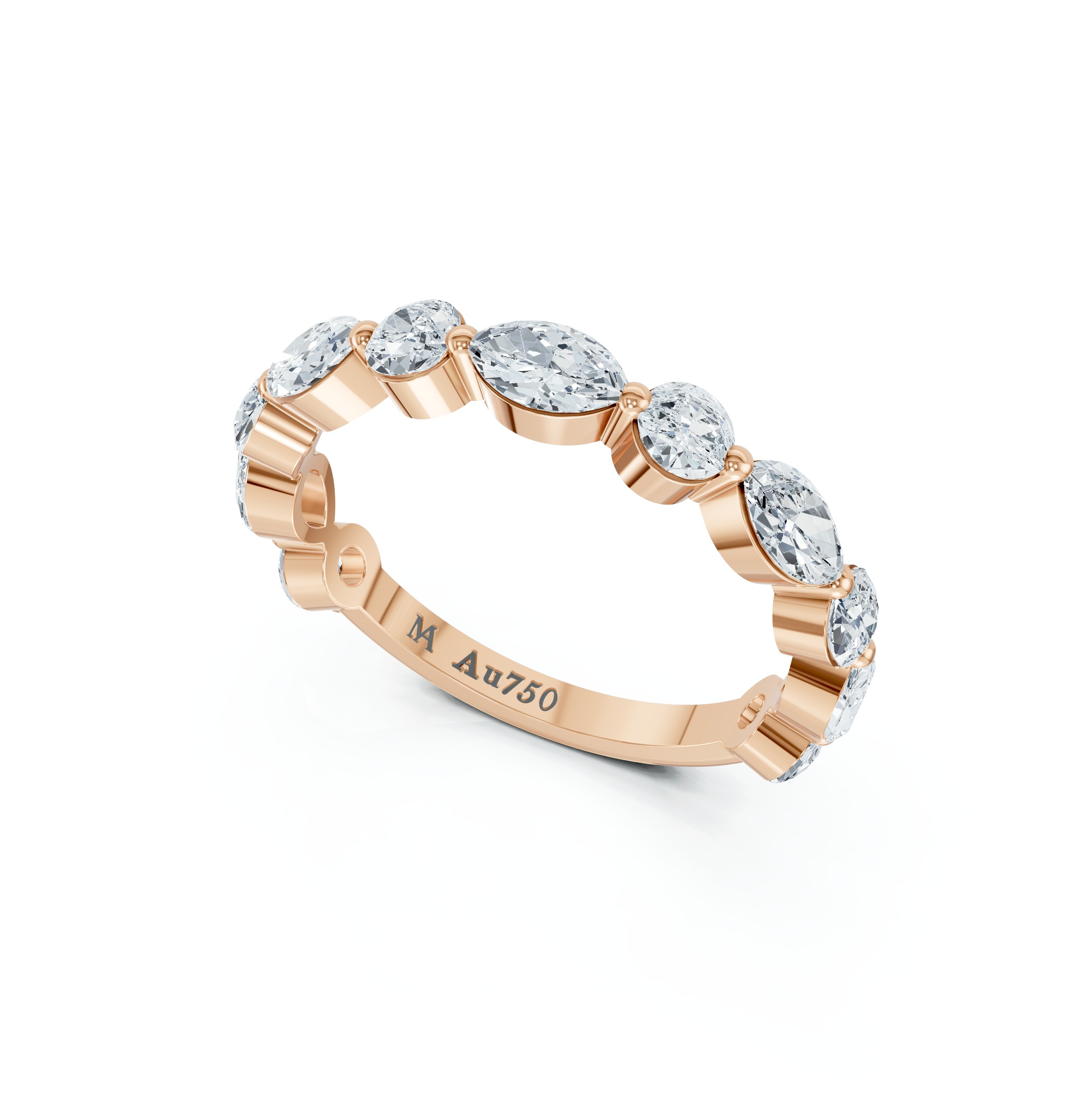Half eternity: Diamonds are set only across the top half of the ring’s band.