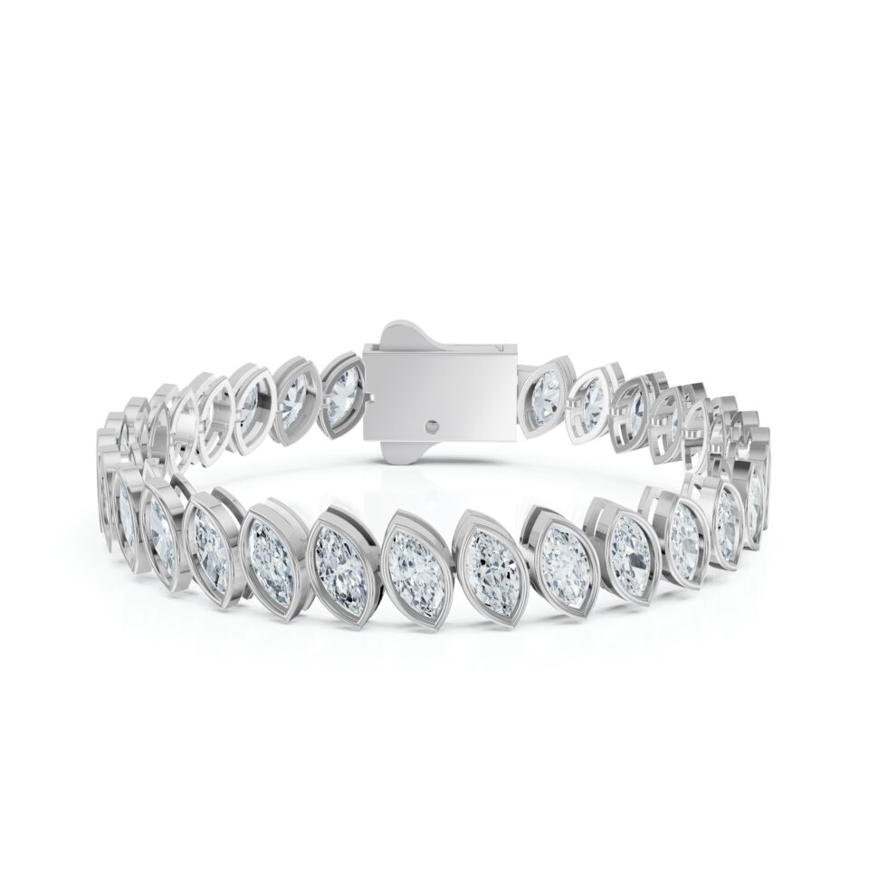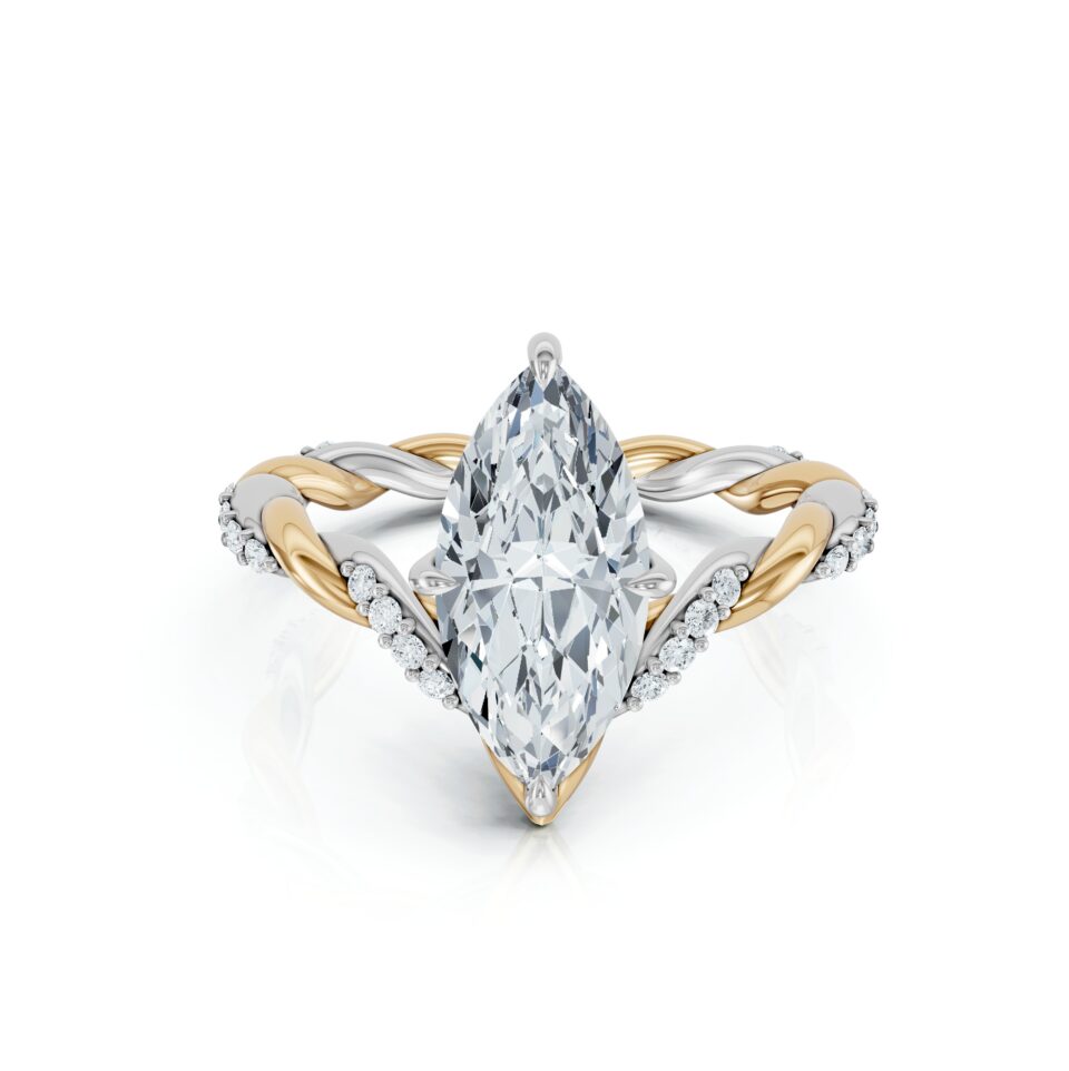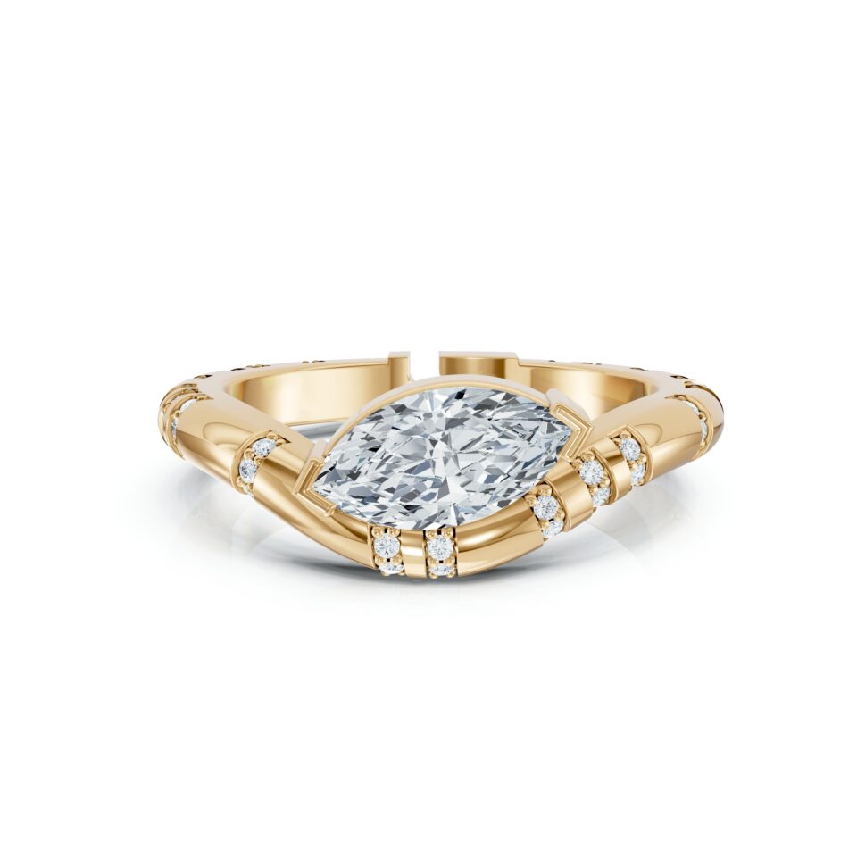 With a distinctive elongated, boat-shaped form, Marquise Diamonds maximize perceived size and flatter the hand. Its pointed ends add drama and sophistication to any setting. Usually 56 to 58 facets, designed to maximize the stone’s perceived size. Perfect for those who value distinctive style, elegance, and a desire to maximize the perceived size of their diamond.