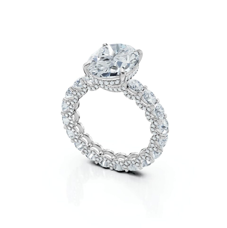 Half eternity: Diamonds are set only across the top half of the ring’s band.